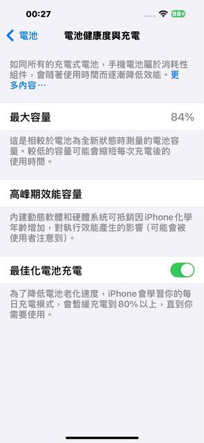 九成新,電池健康度84%