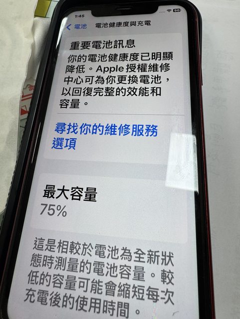 電池健康度:75%