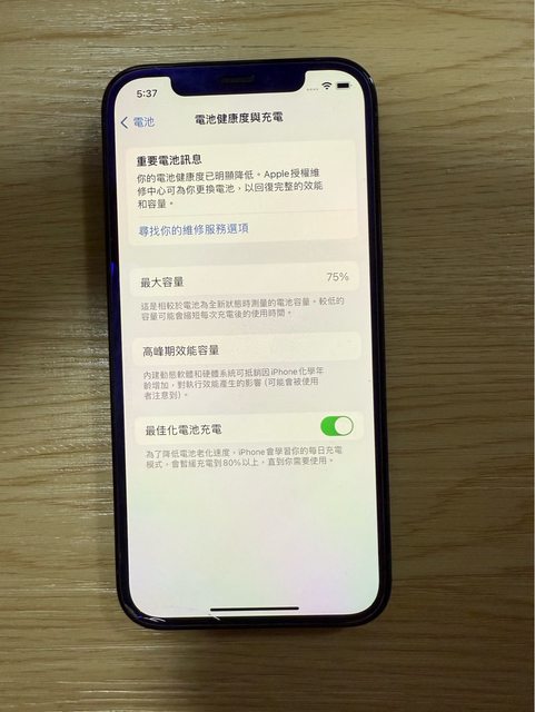 電池健康度75%
