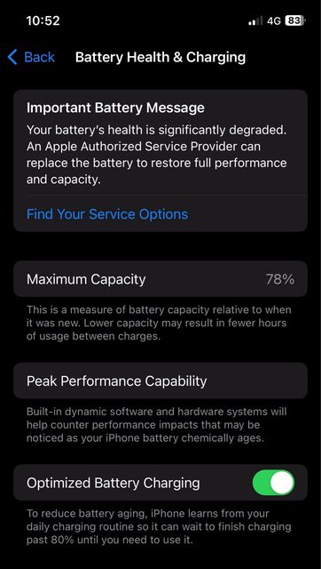 2. 電池健康度78%(未換過電池)。