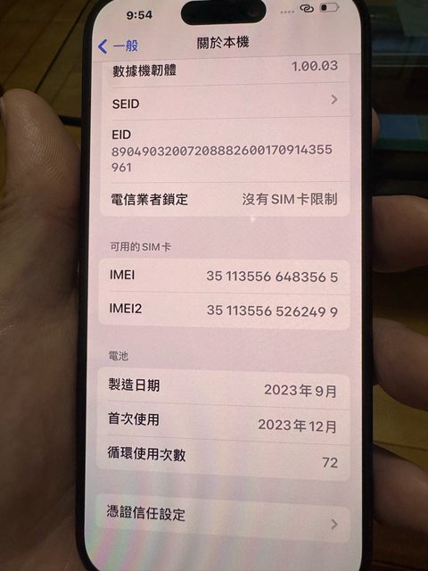 其他:手機無任何刮傷,電池健康度100%,充電循環次數72次,保固內,議價不回