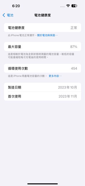 物品狀況:保固中,外觀無摔無裂,正常使用痕跡,電池健康87%,無維修紀錄。