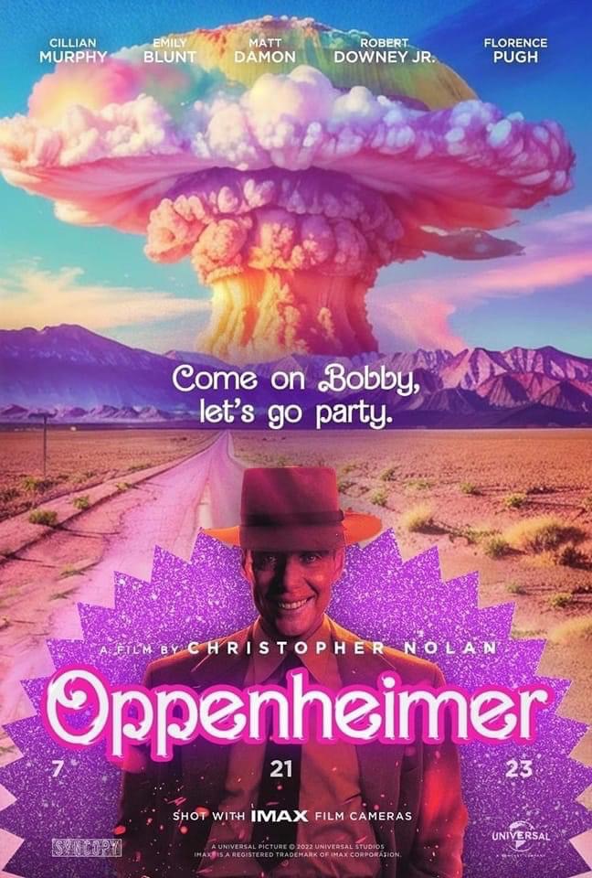 「芭比海默」迷因襲來!《芭比》與《奧本海默》一粉一黑同時上映,讓網友陷入瘋狂