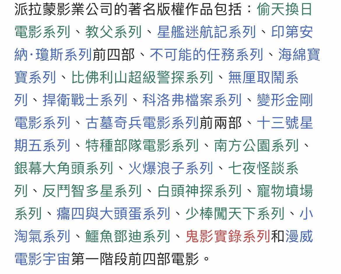 → klo678 : 派拉蒙 我還真不知道有啥IP 07/27 00:15