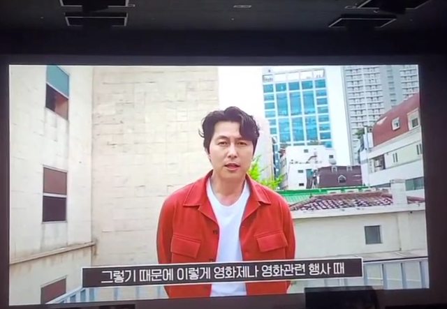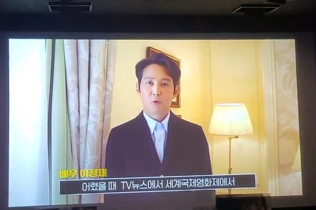 宰也現身影片中發表感言。因接下來播放由安聖基與姜受延主演的電影《你心中的藍色》