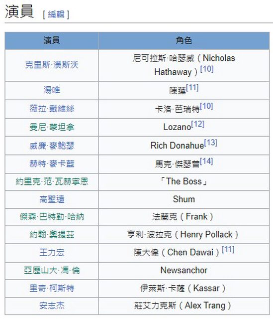 克里斯漢斯沃在《黑帽駭客》中飾演一位駭客,其他演員還包含了薇拉戴維斯和湯唯等,