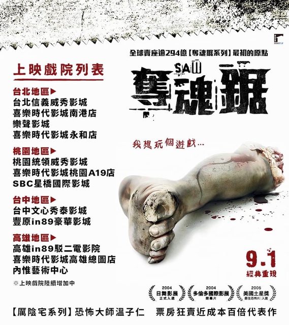 標題[情報] 溫子仁《奪魂鋸》公布上映戲院列表