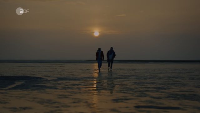 於是全片故事就以留在小島的「療癒」與「和解」展開北海清風的夏末旅程:Antonia 一開始只勉強接受留宿卻絕不吃 Levke民宿三餐、自己小鎮覓食倒也自得其樂還與餐廳中年老闆看對了眼,本來兀自堅持「僅此一夜」明早就搭下一班船絕不留戀、但兒子 Linus很快在島上自得其樂也鼓勵母親多給小島一個機會,果然留在這裡不但學會欣賞小島還跟曖昧老闆一起踩過傳說中的「瓦登海泥灘」體驗滄海桑田、身體暢通心也寬了竟和 Levke仇人破冰慢慢有說有笑起來... 雖然老父 Herbert還是躲在海上遲遲不歸、但是否老父不在反而給她留下心的空間珍惜這裡歲月靜好?