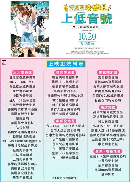 上映戲院列表公開 10/20 (五) 全台上映