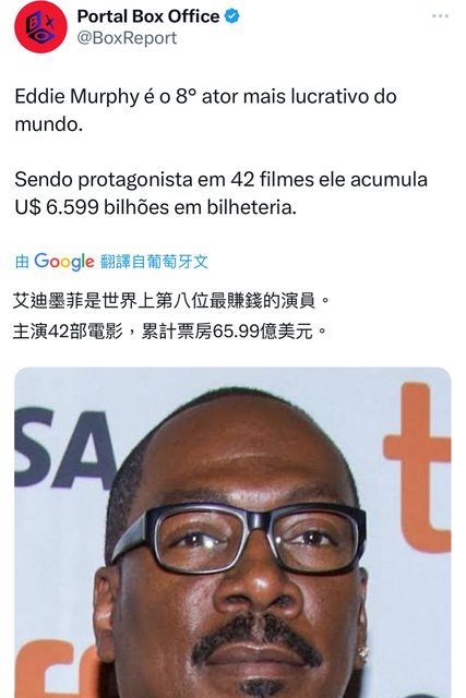 艾迪墨菲是世界上第八位最賺錢的演員。