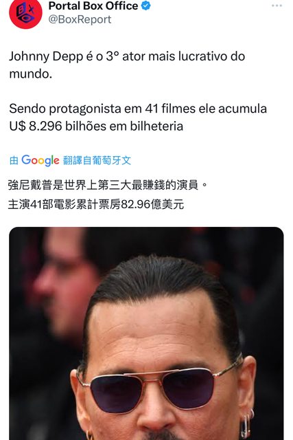 強尼戴普是世界上第三大最賺錢的演員。
