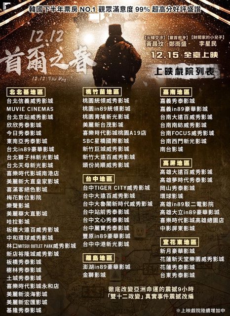 標題[情報] 《12.12:首爾之春》全台上映戲院列表