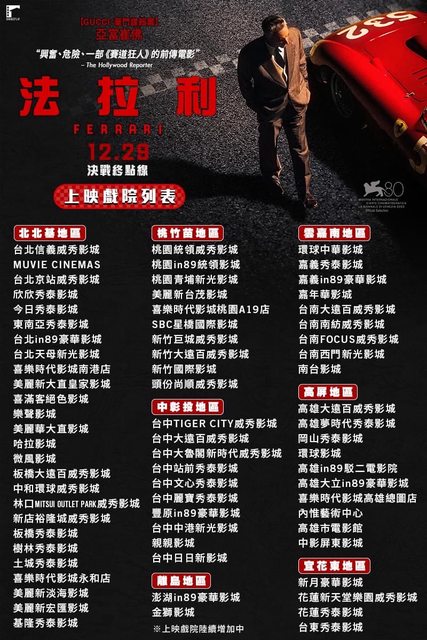 標題[情報] 麥可曼恩《法拉利》全台上映戲院