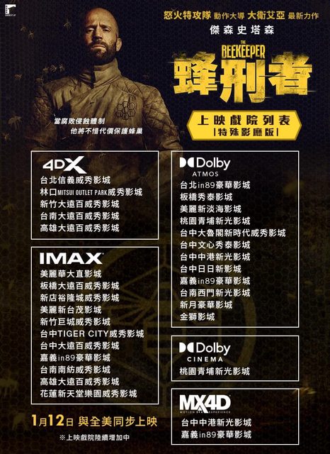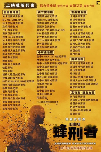 標題[情報] 傑森史塔森《蜂刑者》全台上映戲院列表