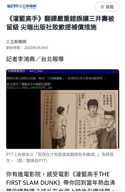 推 h75311418 : 三井留級那個錯譯誤會超多年後來還是網友說才知道 01/15 13:25