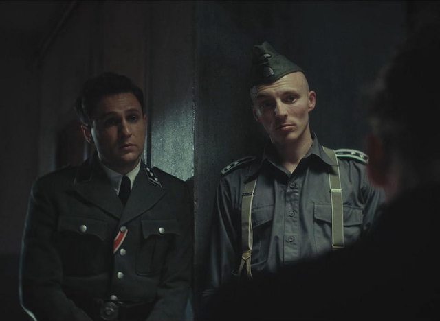 像 Wil這種人與其說心懷理想不如說更在意小確幸、與其說道德勇氣搶救猶太不如說只是 I need a friend、與其說民主正義忠君愛國不如說只是享受革命愛情、一旦東窗事發他雙腿發軟悔不當初就怕連累家人與愛人!那給你上達天聽由納粹上校「保護你與家人安全」你配不配合?當納粹小兵橫著走路殺人為樂不可一世時,納粹領導願網開一面既往不咎還雨露均霑?這無關意識型態純粹 business 大家合作把事辦成就是好夥伴!理智想起各種人道與情義當然應寧死不屈,但本片除了做華麗大戲給 Wil體驗革命快感外、亦做好幾場緩慢鏡頭的血腥驚悚考驗 Wil的意志: