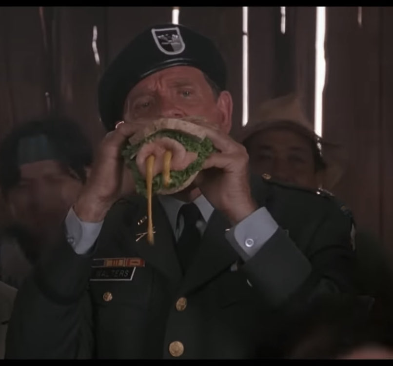片中當藍波為了拯救上校,在第一次的營救失敗時,跟接頭人穆沙的對話