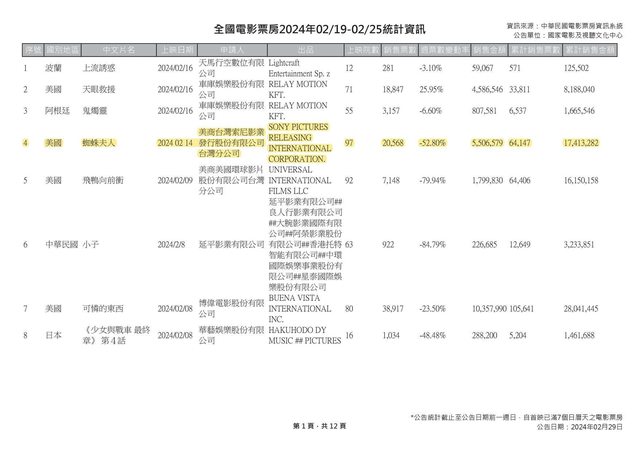 噓 lowl99 : 票房很差,但蜘蛛夫人成本滿低,就算賠也不會比驚奇 02/29 19:15
