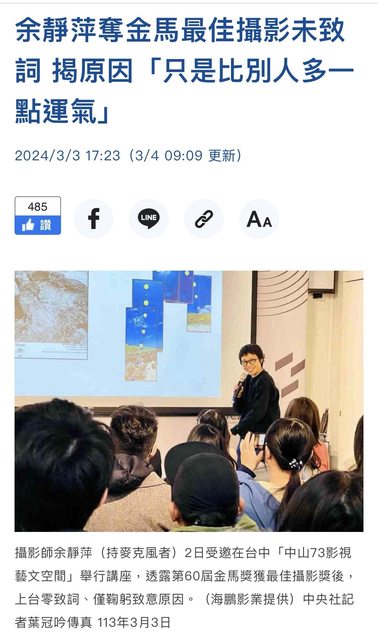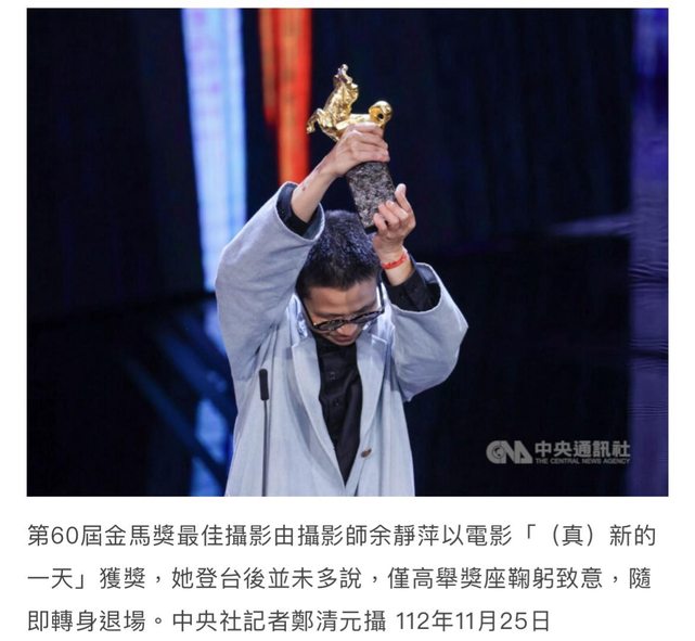 標題[新聞] 余靜萍奪金馬未致詞 揭原因:比別人多一