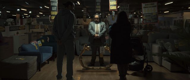 生的角色從上帝換成咖啡桌。一對新手爸媽在家具店裡爭執不休,一向唯妻是從的丈夫堅