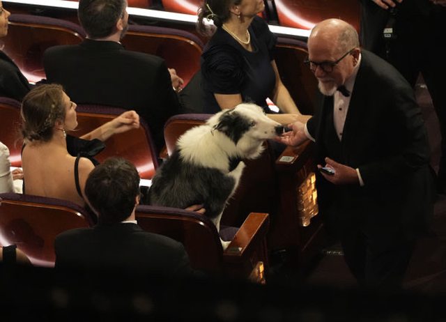▲第96屆奧斯卡頒獎典禮,一度傳被禁出席的牧羊犬梅西來了(圖/達志影像/美聯社)