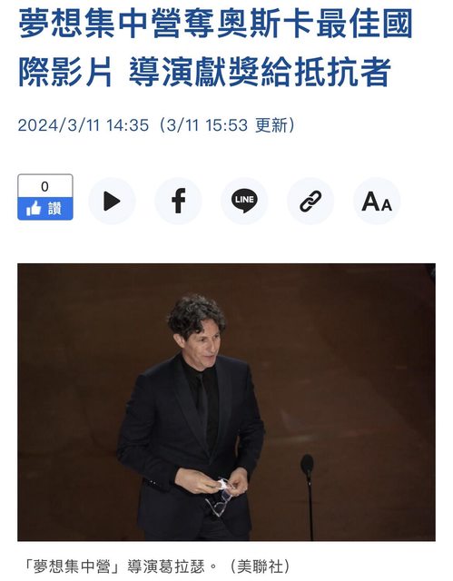 標題[新聞] 夢想集中營奪最佳國際影片 導演獻獎給抵