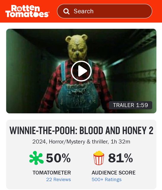小熊維尼:血與蜜》評價慘烈,甚至還橫掃了今年的金酸梅獎,但本片在 202