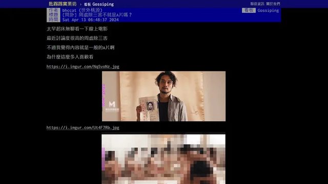 PTT發文《[問卦] 周處除三害不就是A片嗎?》,還po出影片擷圖,內容卻