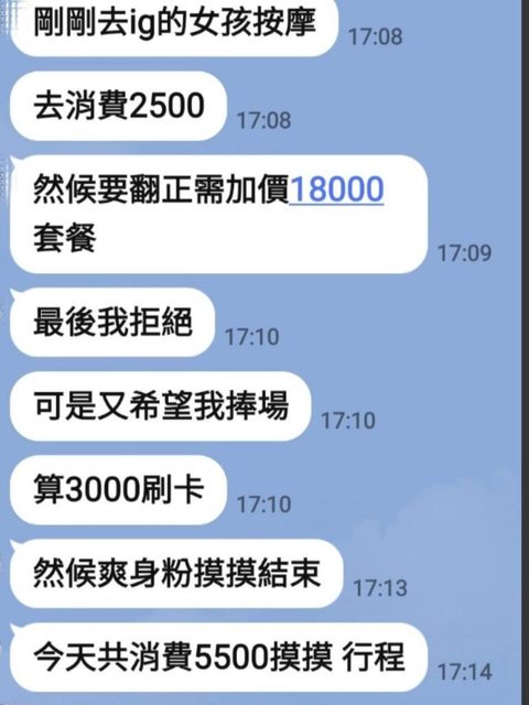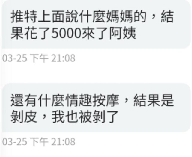 剝皮詐騙只要做好DM,隨便按摩話術誘惑有雙飛/泡泡浴,只要加價2萬喔!或是加會員買