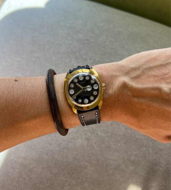面盤指針龍頭均為原裝,手上鍊機芯,黑金配色也是滿符合現代錶的元素,走時、星期日