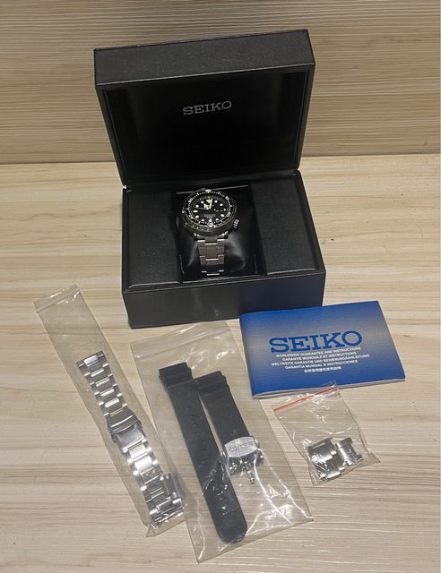 經典停產款石英鮪魚罐頭SBBN031、保卡、錶盒、錶節購買收據大全套。