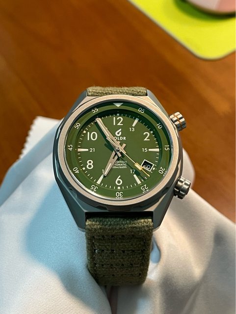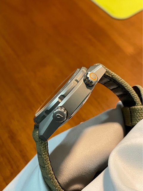 前手是2021/7自網路全新購入,已過保,平時配戴使用原廠布質錶帶有使用痕跡,