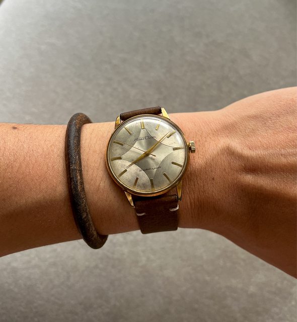 2. Seiko crown 老錶特殊面,手上鍊機芯,已洗油保養更換皮錶帶,走時正常,售4500