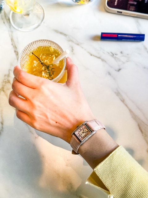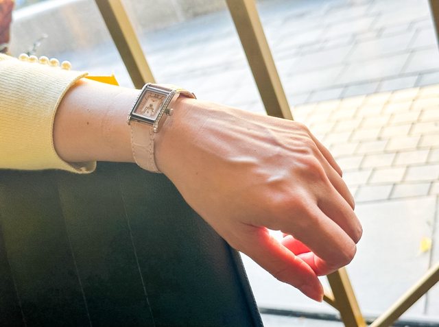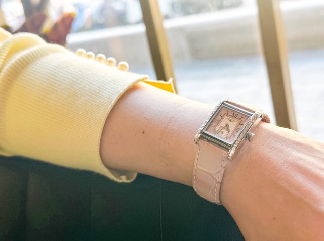 她一直和我討論著手上的這只新手錶,覺得很有優雅高貴的感覺