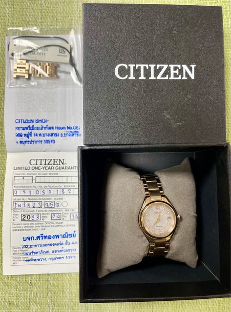 2.CITIZEN-光動能水晶女錶-玫瑰金26mm