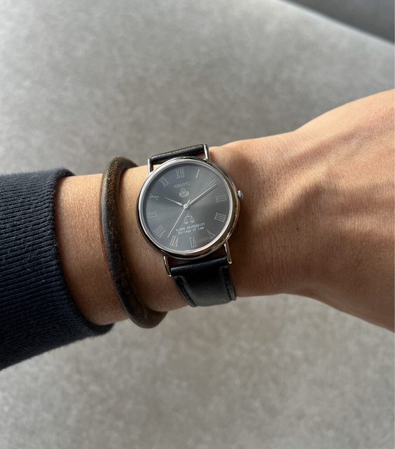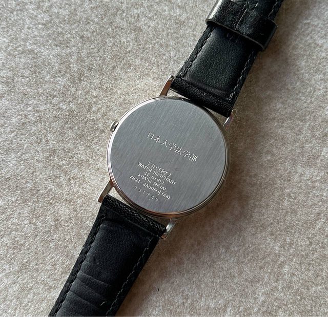 2. Seiko 老石英約2003年生產,日本大學聯名石英,銀灰色面盤、銀色羅馬時標,面盤