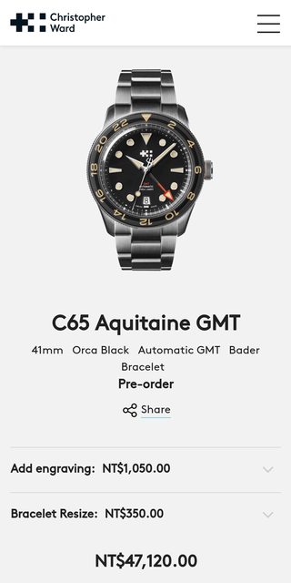 標題[賣錶] CW C65 Aquitaine GMT 黑