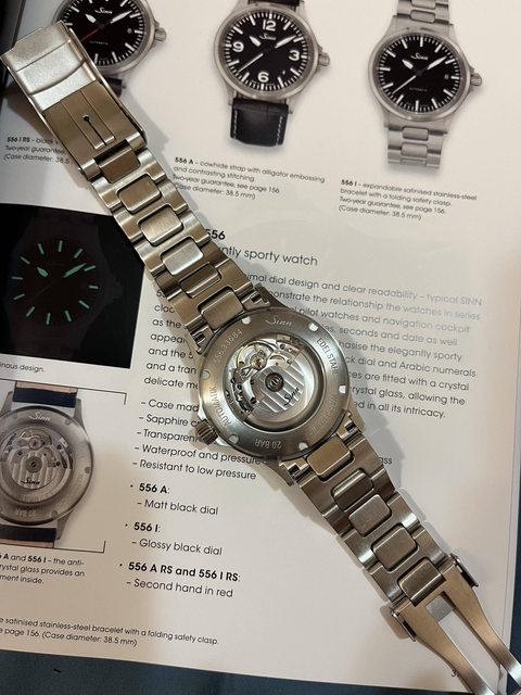 (3)Sinn很清楚的抓住556作為入門工具錶的定位,用全打磨+全印刷錶盤,沒有如很多牌子一般做出不明所以的修飾(加個閃亮亮的applied mark 之類的)。我想唯一遺憾是加了一個小日期窗,稍微破壞了平衡,我想是為了實用性所做的取捨,但必需稱許的是,Sinn把它做的非常小而且同樣上了黑色底色,就不會去搶走視覺的焦點,看得出來有在用心。