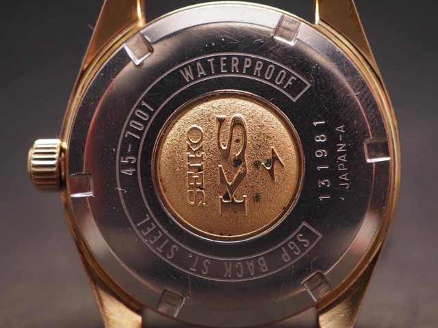 自1968年推出的45KS,錶盤上的閃電標代表由東京龜戶第二精工舍製造,使用了與45GS相