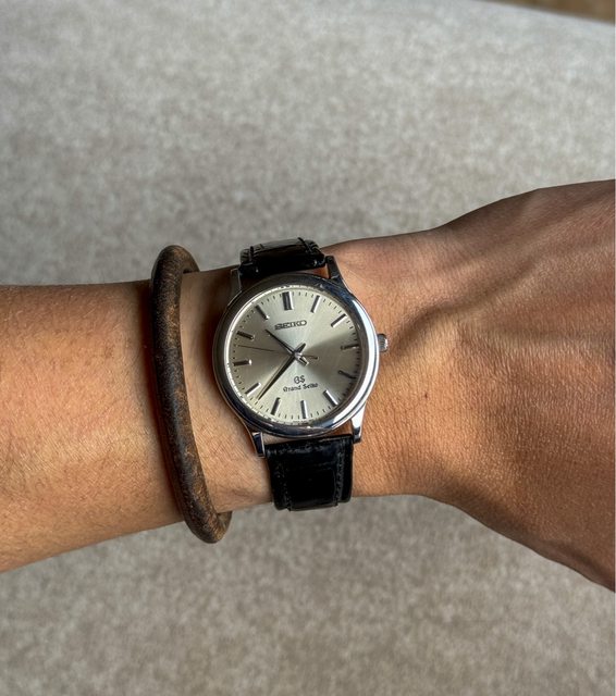 1. Grand Seiko 雙標老石英,約1991年生產,算是GS早期的石英,銀色旭日紋面盤,精