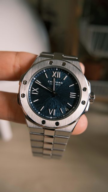了藏青藍的皮革錶帶,配上藍鋼指針感覺更有一體性。除了原廠黑色鱷魚皮和錶扣外,還會
