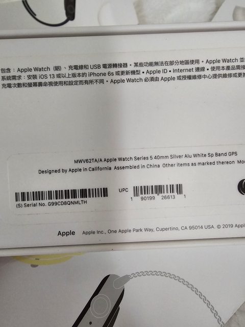 【型號】Apple Watch 5 白色