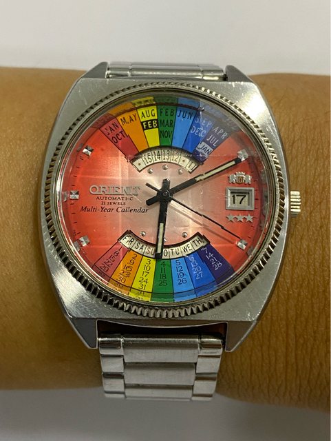 【商品名稱】東方-彩虹機械錶 【商品價格】2860元(含店到 【外觀等級】如圖 【附件】單錶乙顆,原廠錶帶 ————————————————— 型號EU04-C0 東方復古的彩虹面版,搭配多切面玻璃非常的吸睛 錶徑約37mm(不含龍頭) 走時正常 日期快調正常 —————————————————- 匯款後店到店,無面交服務