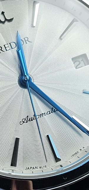 0.1mm、深邃的機刻面盤、少見的刻紋對應時標、三根肥瘦細燒製藍鋼秒針