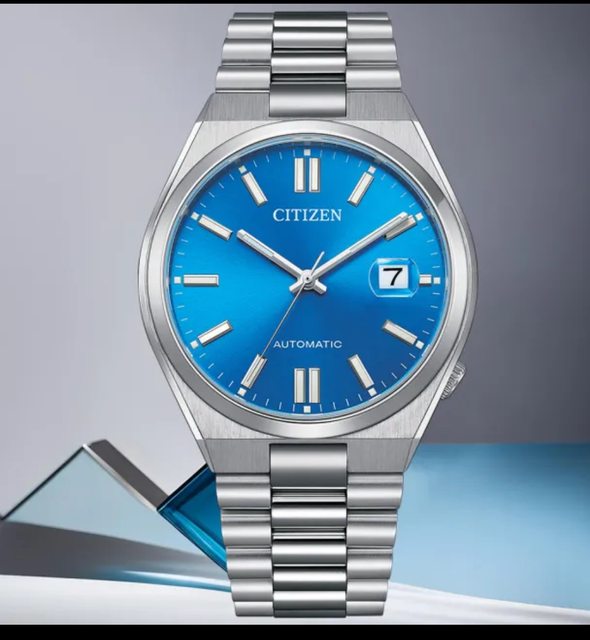 逛百貨公司時無意間看到sitizen Pantone藍色的機械錶,超喜歡這種藍色以及簡約的風
