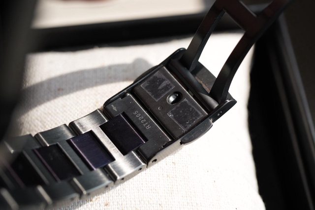 除了藍黑配色之外,錶扣的地方還可以快速調整長度(應該算有3種微調長度?)