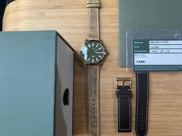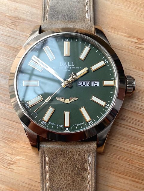 商品:Ball波爾青銅綠面皮帶飛行機械錶