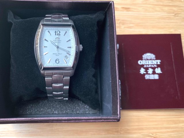 商品:Orient東方絕版酒桶白面鋼帶錶
