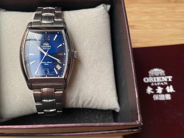 商品:Orient東方絕版酒桶藍面鋼帶錶
