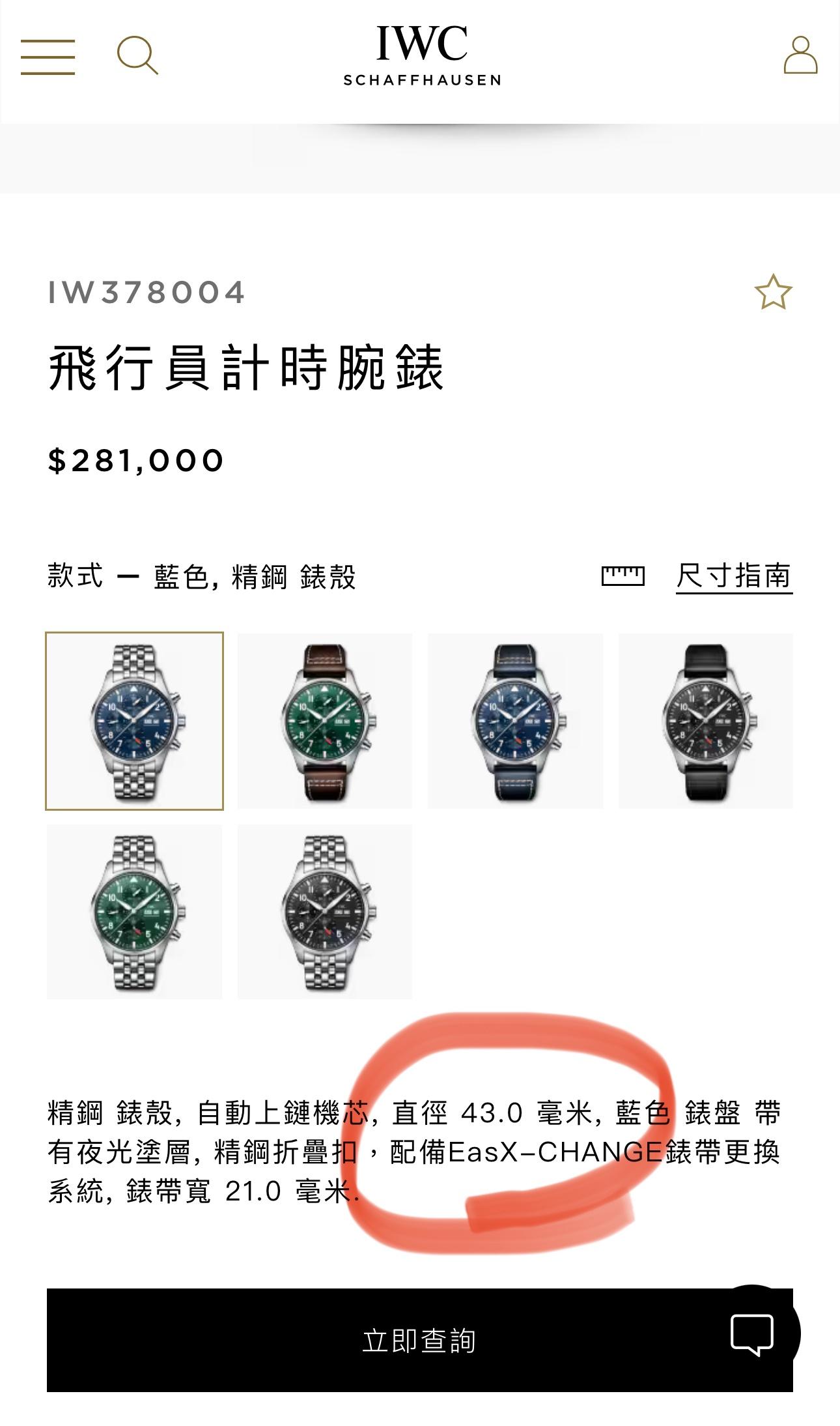 手錶型號:IW378004